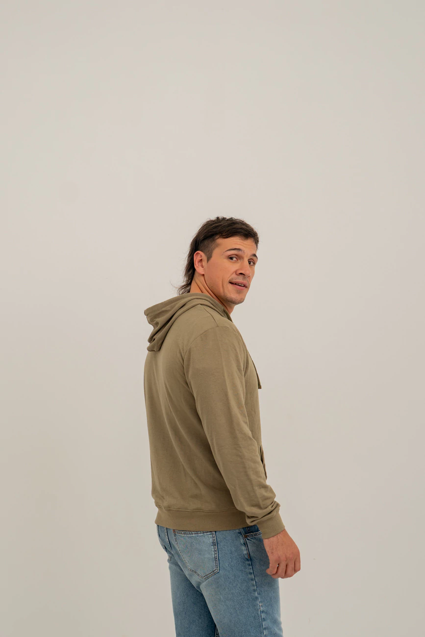 Su diseño incluye capucha ajustable y práctico bolsillo tipo canguro, pensado para un look urbano y funcional.