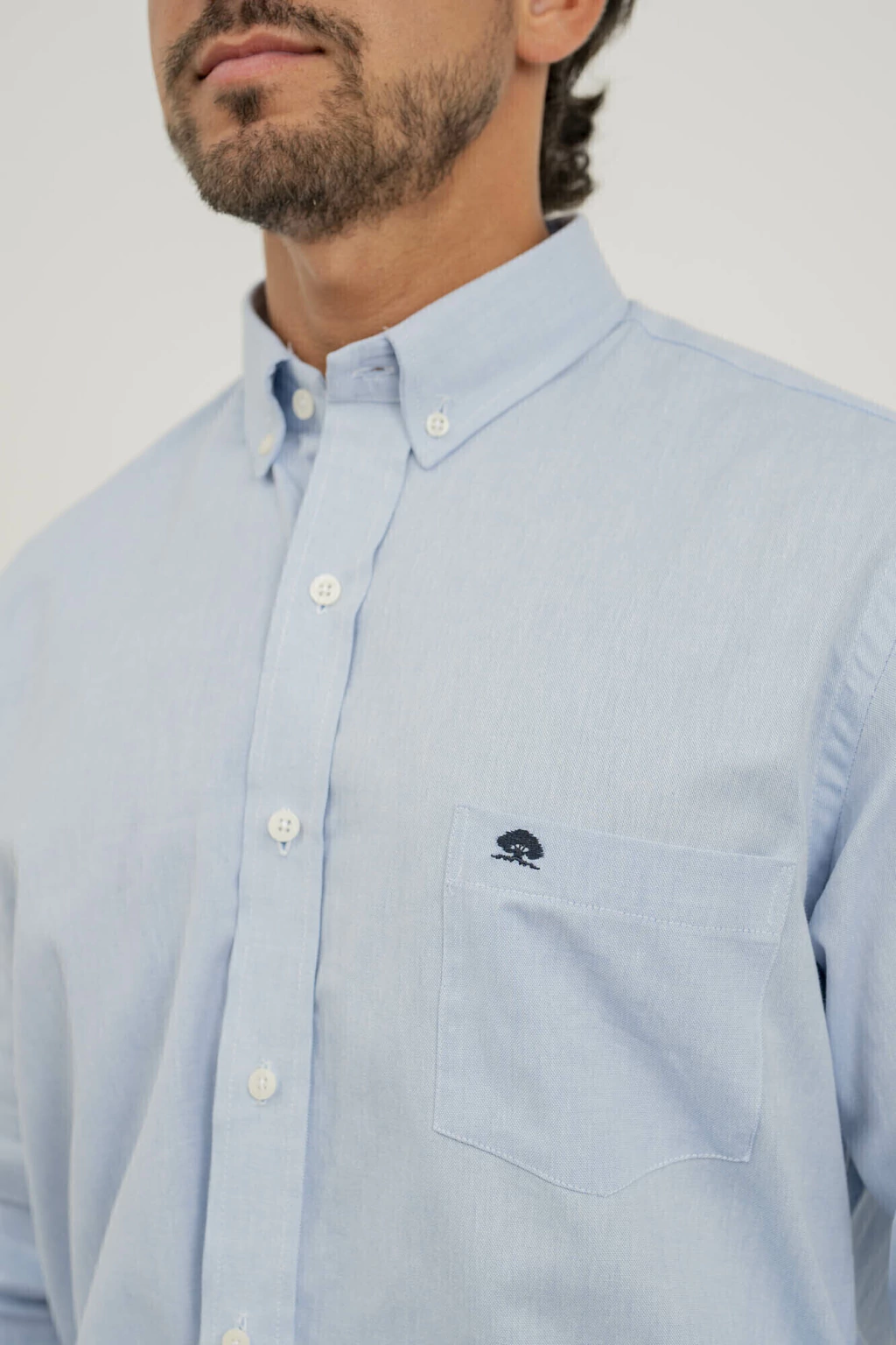 Los detalles como los botones personalizados y el bolsillo en el pecho con el logo bordado le dan un toque sofisticado y único.