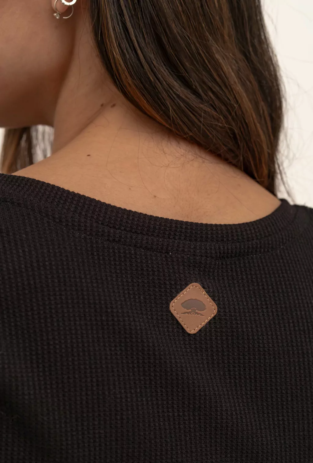 El detalle de la etiqueta de badana personalizada en la espalda aporta un toque único, destacando la exclusividad de la prenda.