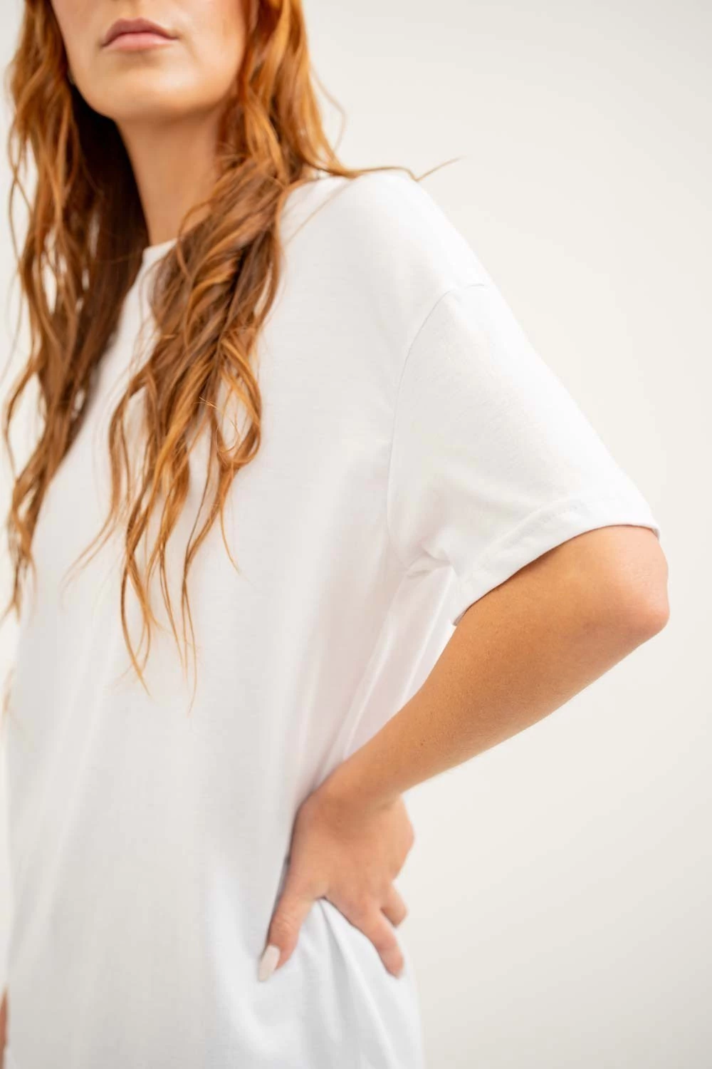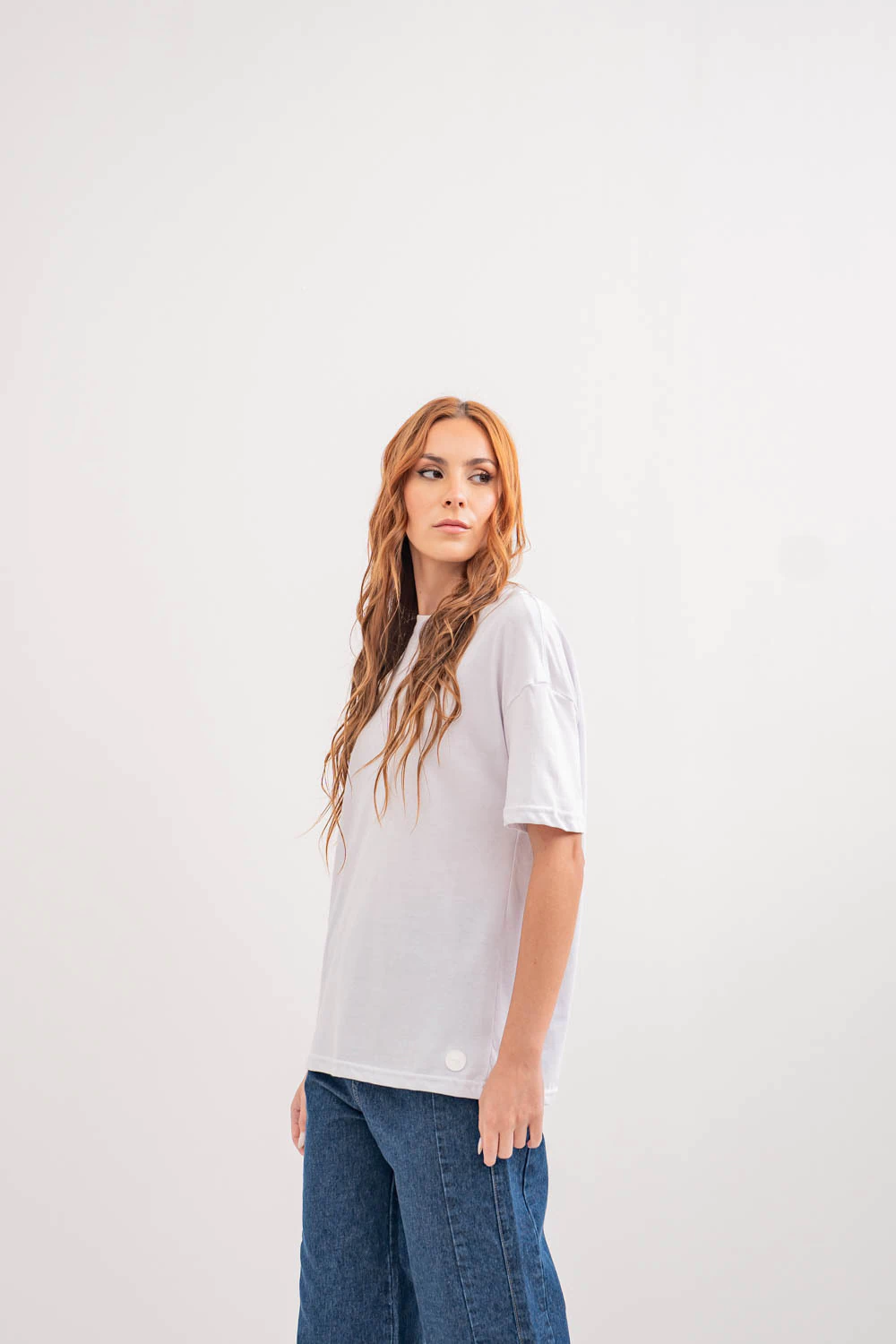 Te presentamos nuestra remera oversize de mujer que presenta un diseño liso y minimalista, confeccionada en 100% algodón, lo que garantiza suavidad y transpirabilidad, ideal para el uso diario.