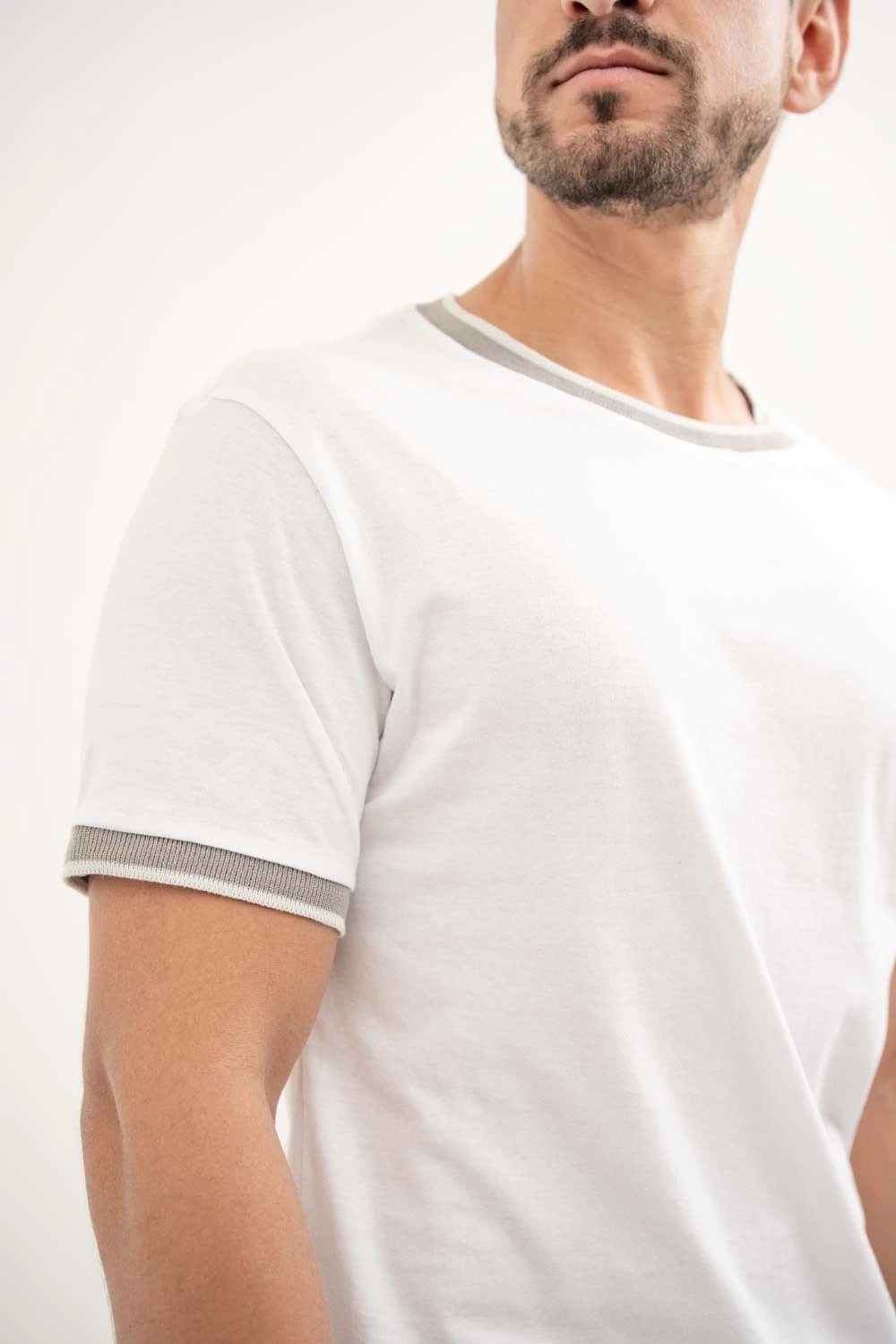 El cuello de ribb de algodón en color gris añade un contraste sutil que realza la estética de la prenda, dándole un toque moderno y distintivo.