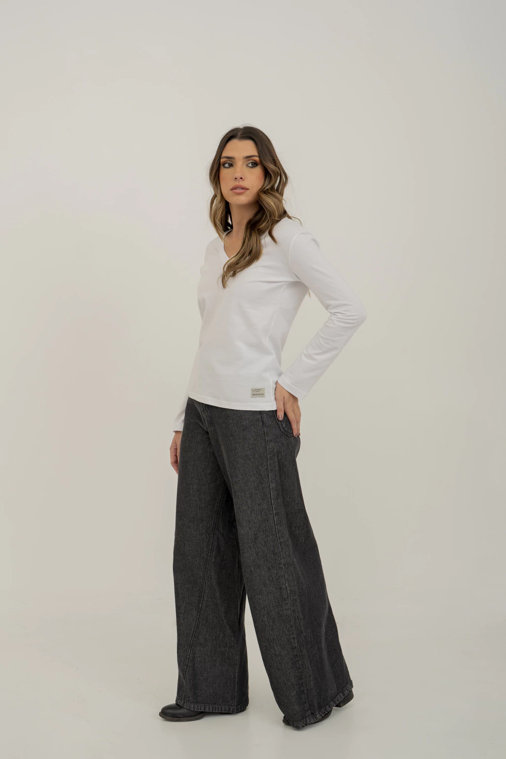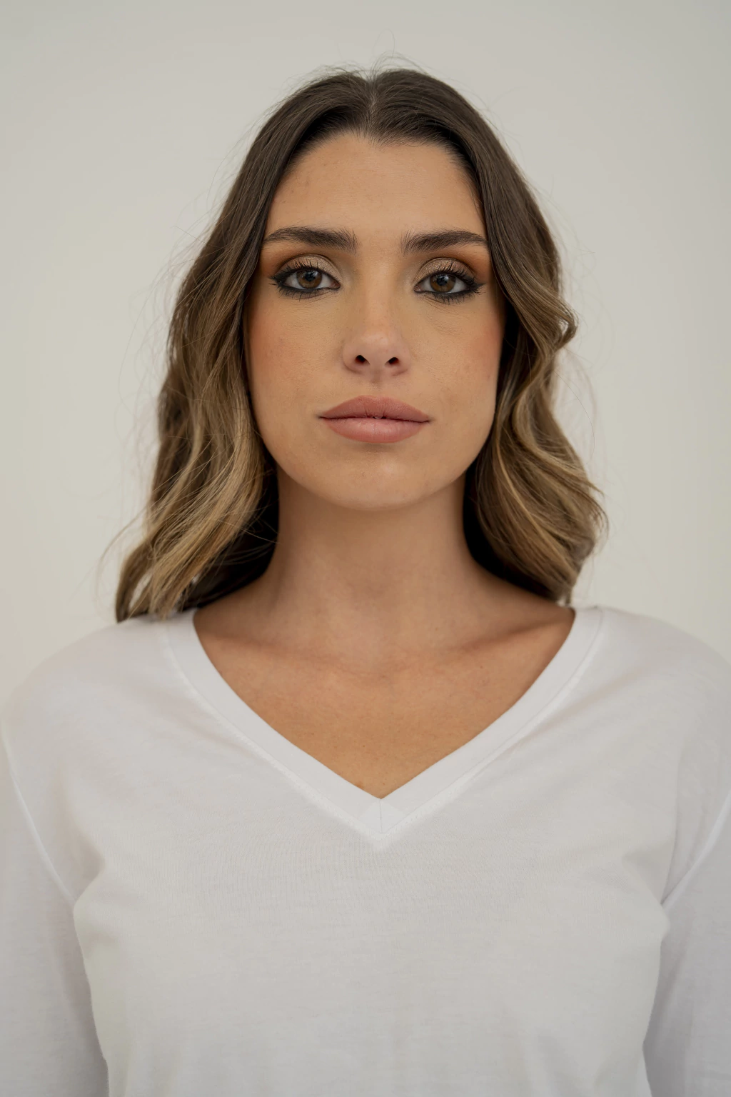 Te presentamos nuestra Remera cuello V con mangas largas, diseñada para ofrecer un estilo atemporal y cómodo.