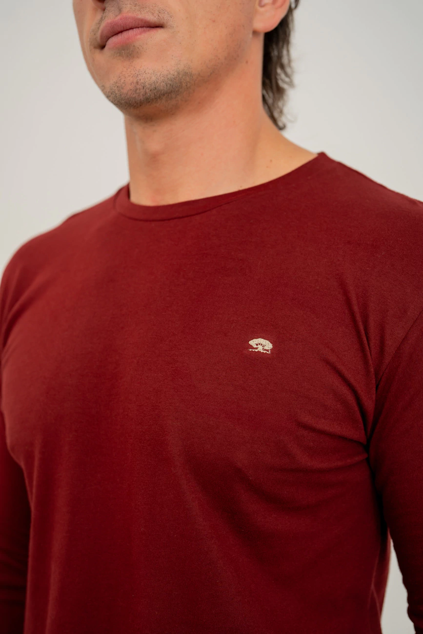 Te presentamos nuestra remera básica de manga larga con cuello "O". Presenta un corte regular, ofreciendo un ajuste cómodo y clásico.