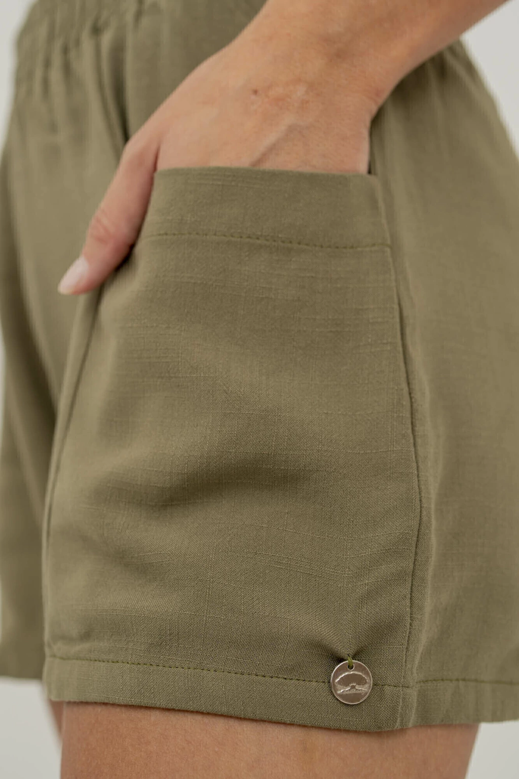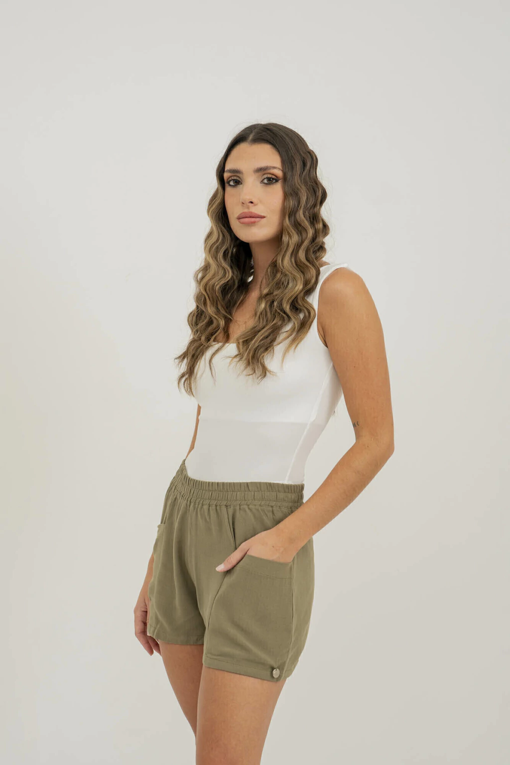 Diseñado con un elástico en la cintura para un ajuste seguro y confortable, y bolsillos delanteros laterales ideales para guardar lo esencial. El toque distintivo lo aporta el dije metálico personalizado, que agrega un detalle moderno y único.